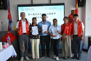 The event brought together over 50 participants, including Professor Li Shuangcheng (Chinese Director of the Confucius Institute at Kathmandu University), Professor Zhang Xingnian (Chinese Director of the Confucius Institute at Tribhuvan University), Ms. Wu Yuan (Head of the LRI Confucius Classroom), Ms. Wang Liyan (Teacher at the Confucius Institute at Kathmandu University), Mr. Yang Nian (Head of the Chinese Volunteers’ Teacher Association in Nepal), Mr. Yang Shuai (Teacher at Bishwo Bhasa Campus), and all faculty members of the Confucius Institute at Kathmandu University.